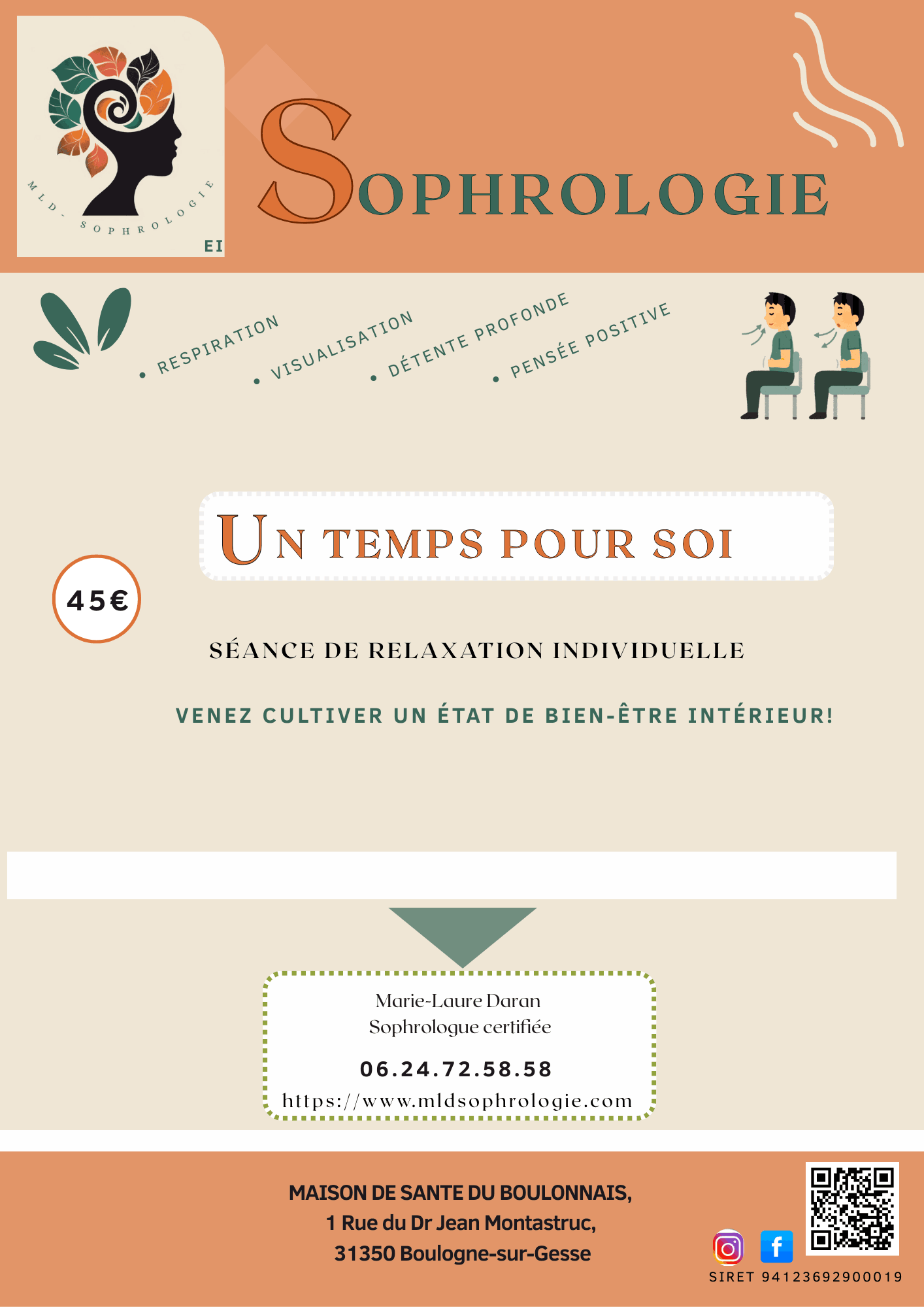 Séance individuelle de relaxation - sur rdv au cabinet de Boulogne-sur-Gesse (31) ou à Monblanc (32).